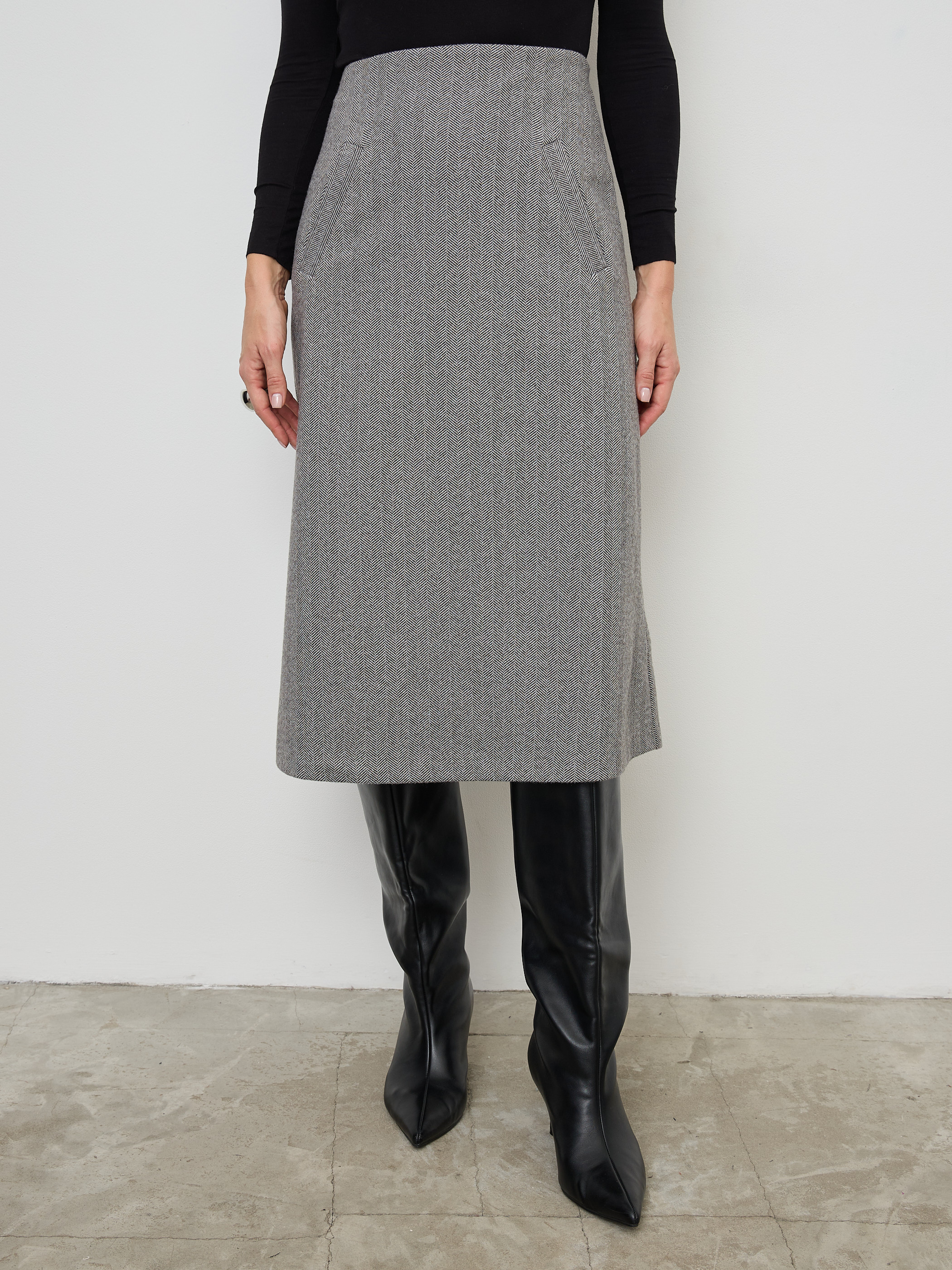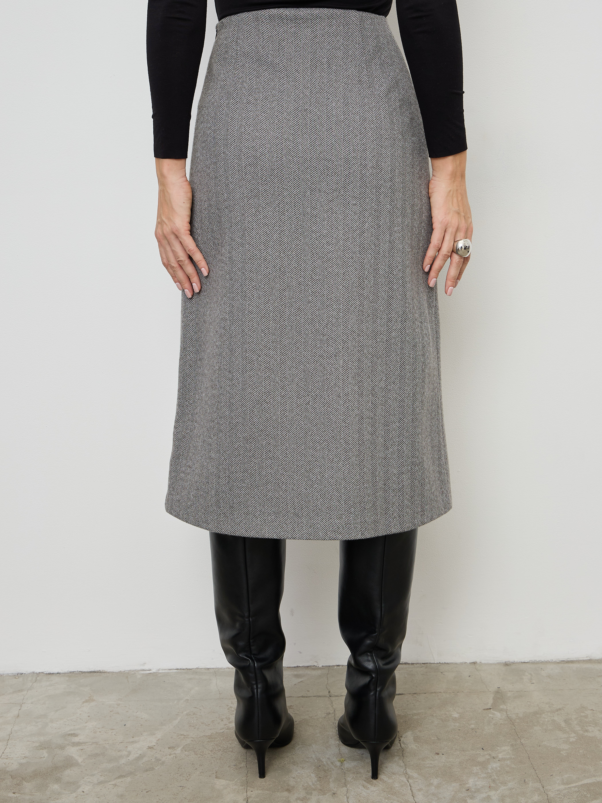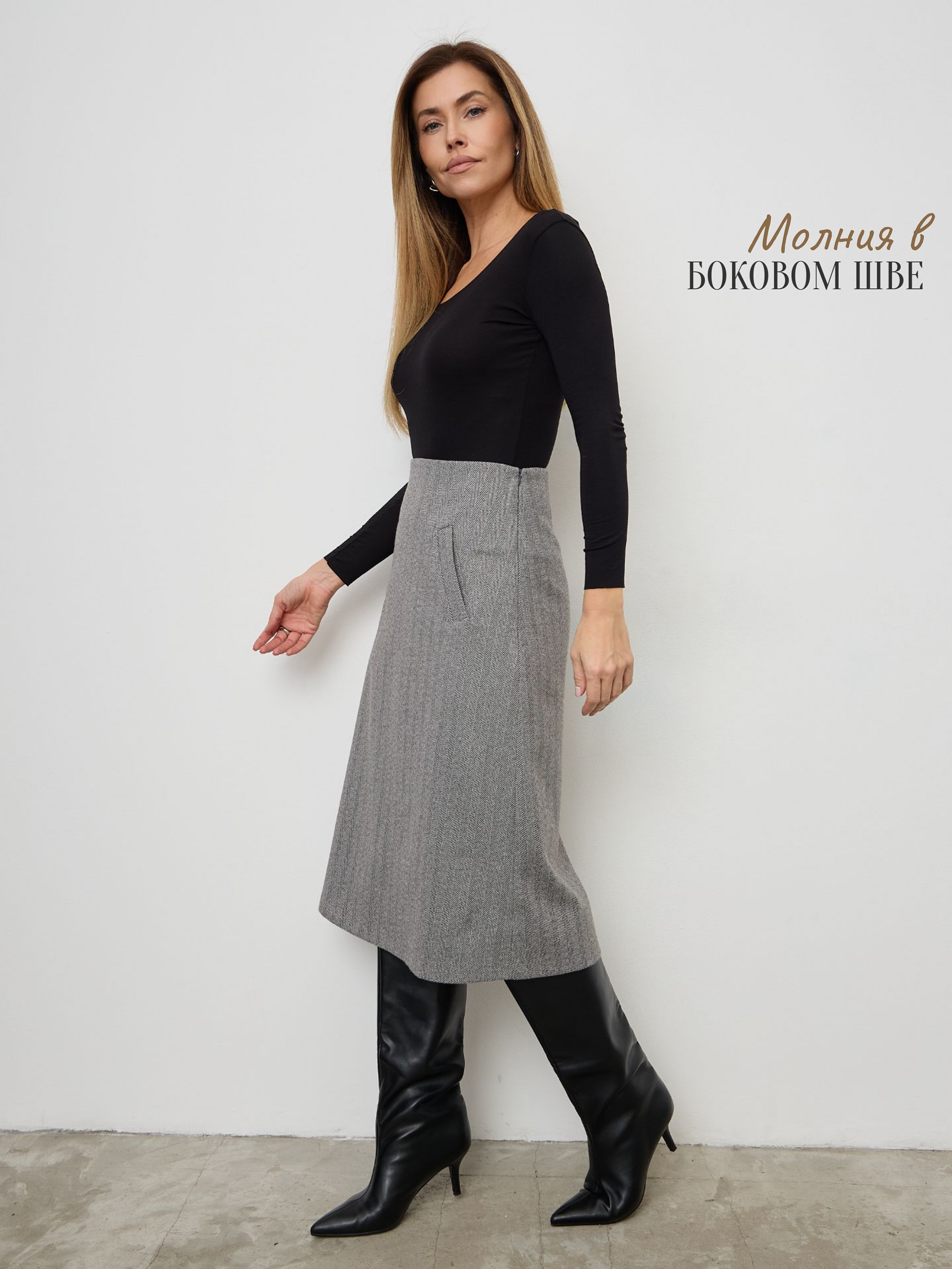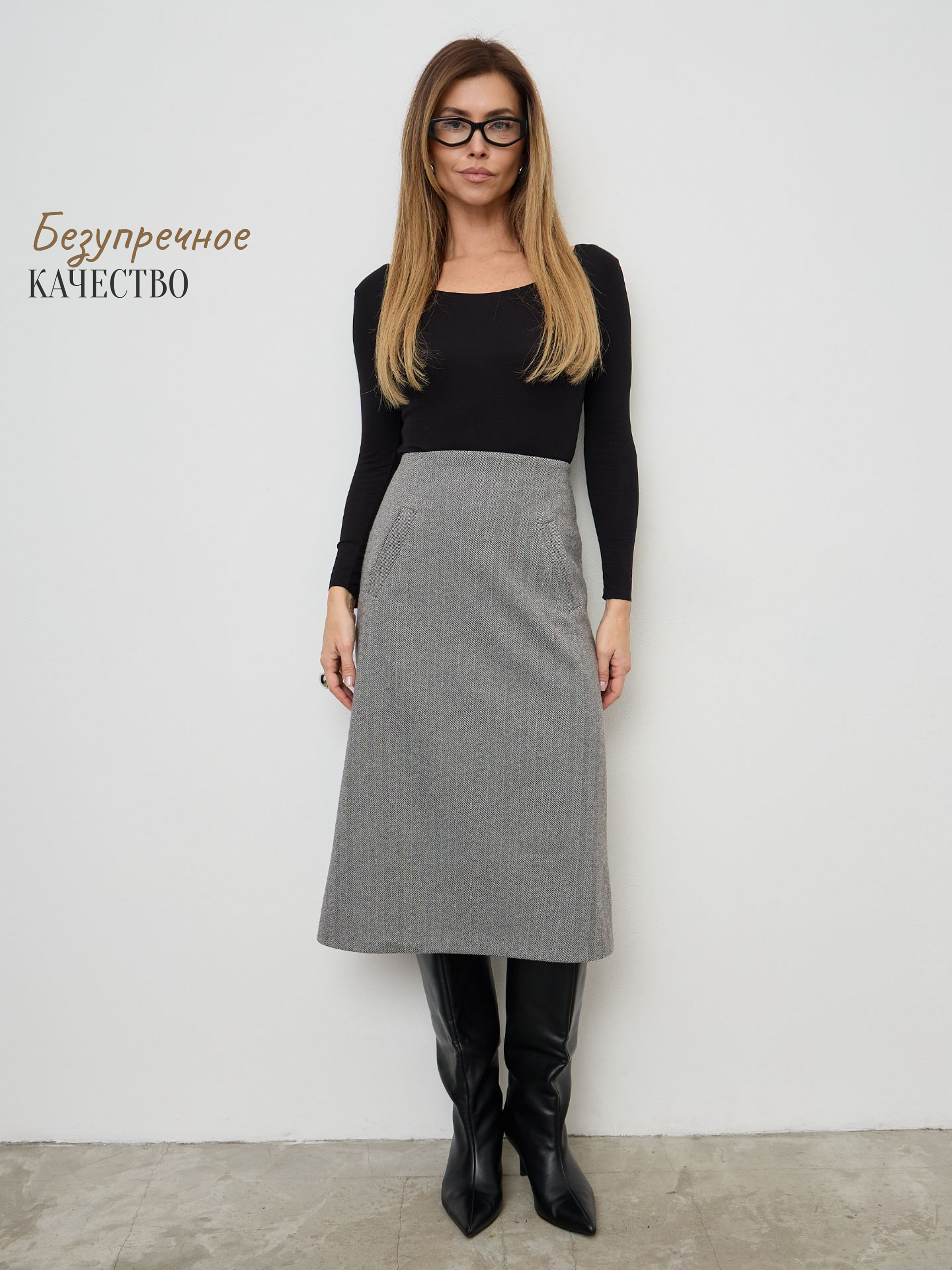 Теплая юбка трапеция длины миди, с удобными прорезными карманами – универсальная вещь в базовом гардеробе. Выполнена из качественной плотной ткани с легким начесом, содержит более 30% натуральной шерсти, при этом остается удивительно мягкой и не колючей. Юбочка на молнии с широкой обтачкой, что создает легкий моделирующий эффект. Большим её достоинством является наличие полноценной подкладки, что позволяет уменьшить сминаемость изделия, деформацию, убрать статическое электричество и предотвратить прилипание к телу. Высокая посадка позволяет визуально удлинить ноги и сделать силуэт более стройным и подтянутым. Стильная утепленная юбка А силуэта – это классика модная во все времена. Не сковывает свободу движений и подчеркивает красоту ног. Она идеально подходит для создания делового или повседневного образа. Это офисный или школьный вариант в зависимости от выбранного верха, отлично для учителей и для работы на каждый день. Зимнюю юбку колокольчик можно комбинировать с любой одеждой и обувью. Осенняя юбка с завышенной талией придает образу легкость и элегантность. Она подходит обладательницам любого типа фигуры. Такой крой визуально скрывает недостатки, делая силуэт более стройным и грациозным. Актуальна для любой возрастной категории, для полных и худых, для высоких и невысоких девушек и женщин. В коллекции есть большие размеры. Демисезонная и комфортная юбка станет для Вас любимой и незаменимой вещью!